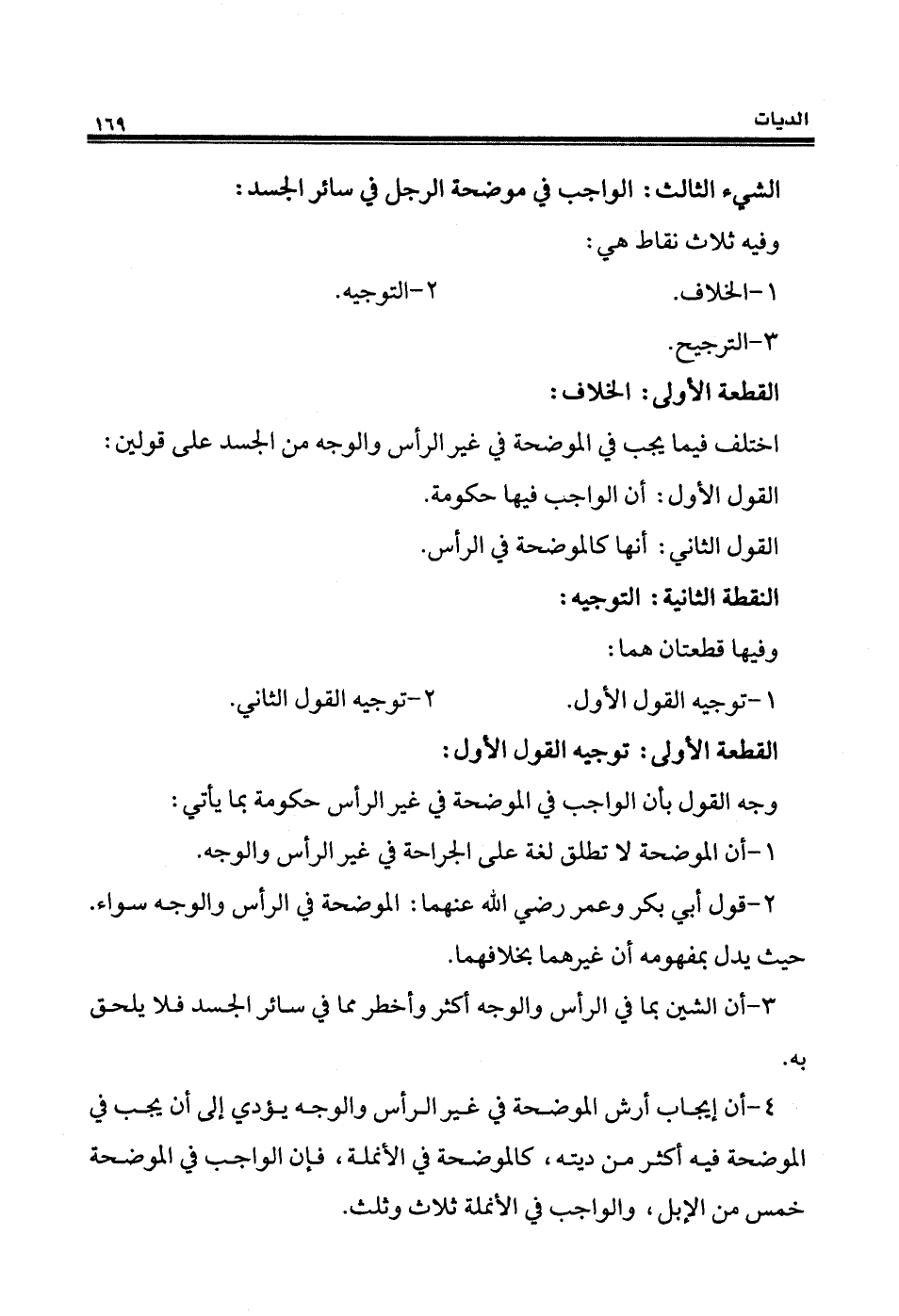 4 - أن إيجاب أرش الموضحة في غير الرأس والوجه يؤدي إلى أن يجب في الموضحة فيه أكثر من ديته، كالموضحة في الأنملة، فإن الواجب في الموضحة خمس من الإبل، والواجب في الأنملة ثلاث وثلث.