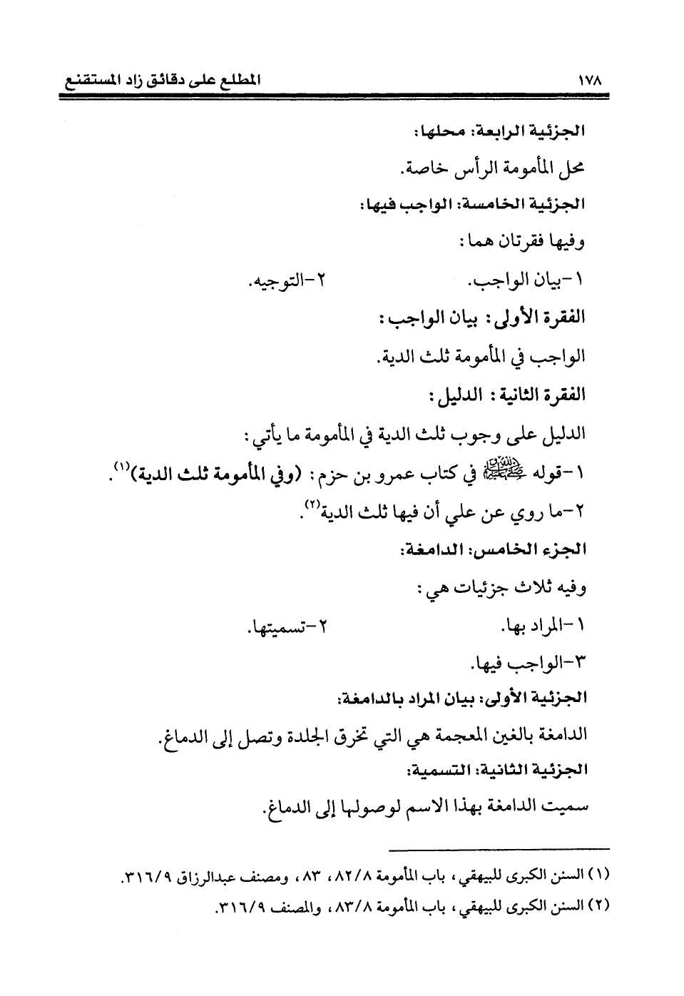 (¬2) السنن الكبرى للبيهقي، باب المأمومة 8/ 83، والمصنف 9/ 316.