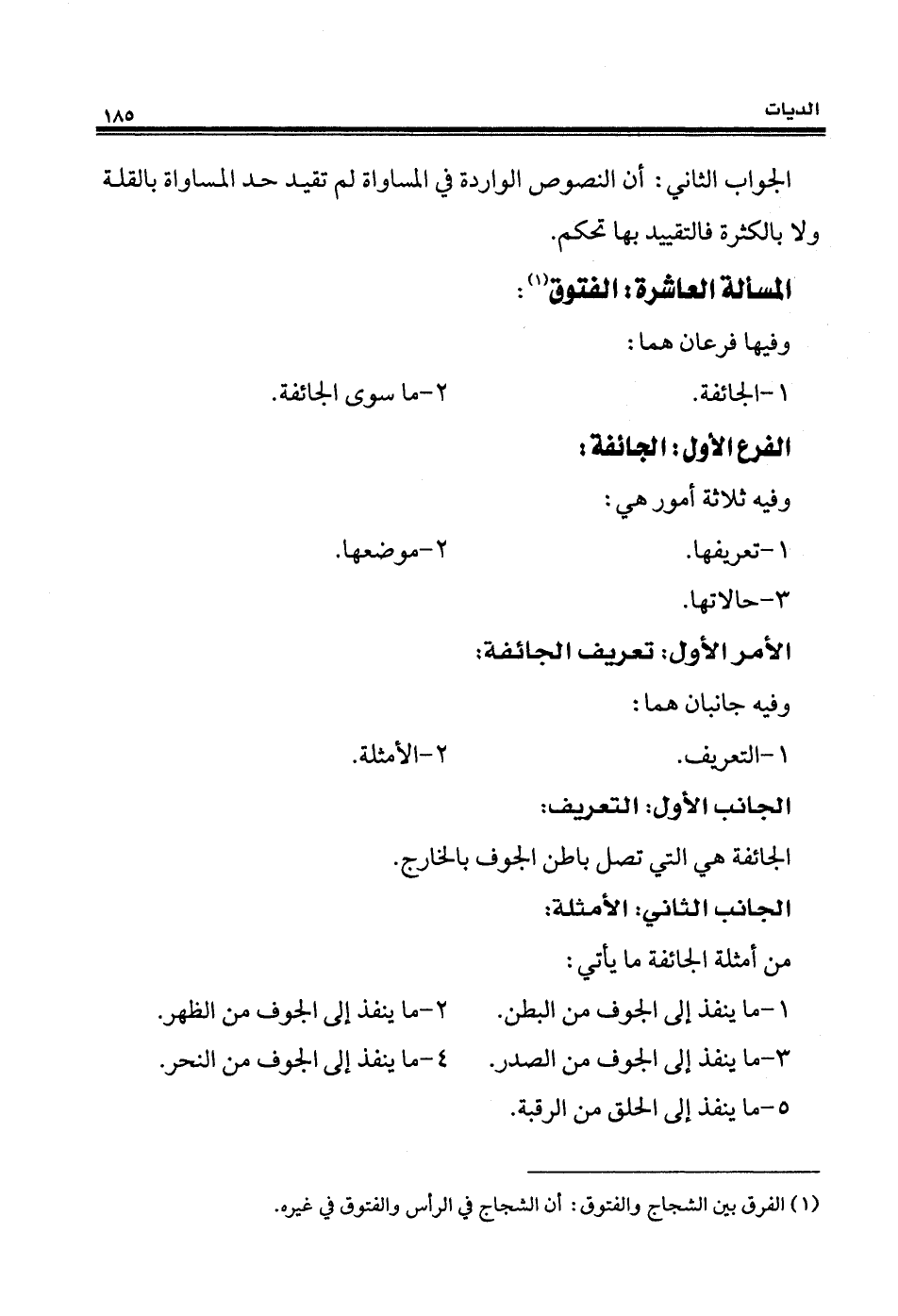 (¬1) الفرق بين الشجاج والفتوق: أن الشجاج في الرأس والفتوق في غيره.