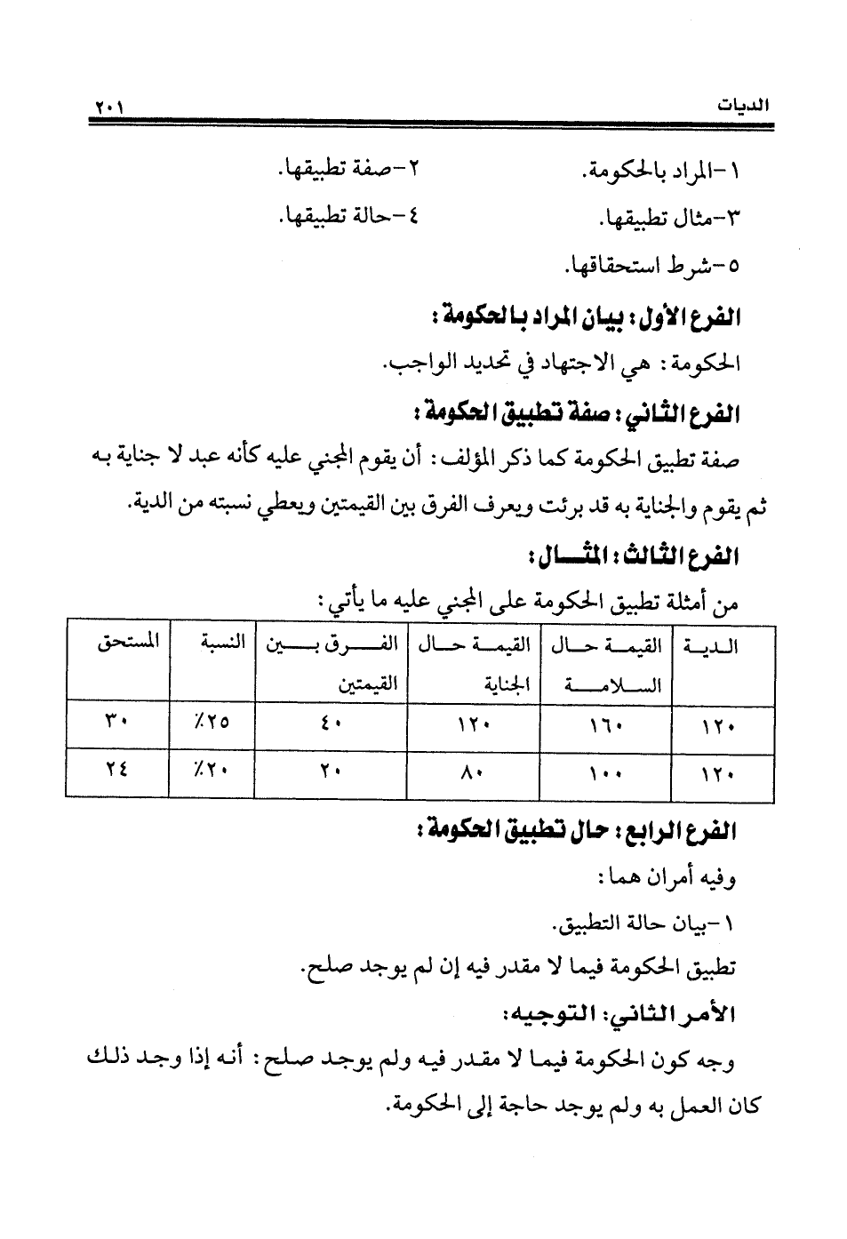 صفة تطبيق الحكومة كما ذكر المؤلف: أن يقوم المجني عليه كأنه عبد لا جناية به ثم يقوم والجناية به قد برئت ويعرف الفرق بين القيمتين ويعطي نسبته من الدية.