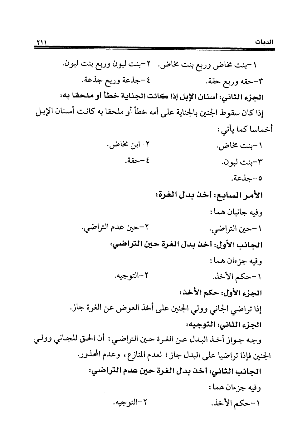 الجزء الثاني: أسنان الإبل إذا كانت الجناية خطأ أو ملحقا به: