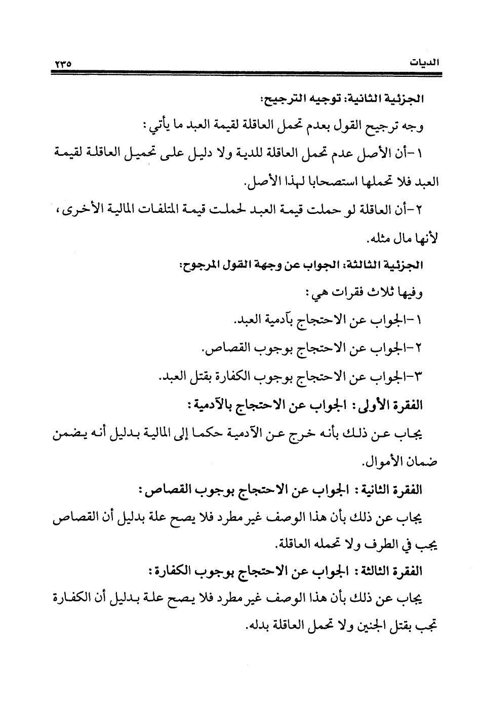 2 - أن العاقلة لو حملت قيمة العبد لحملت قيمة المتلفات المالية الأخرى، لأنها مال مثله.
