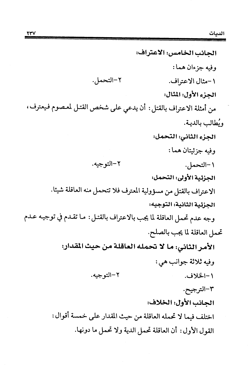 الاعتراف بالقتل من مسؤولية المعترف فلا تتحمل منه العاقلة شيئا.