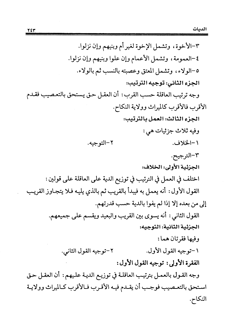 اختلف في العمل في الترتيب في توزيع الدية على العاقلة على قولين: