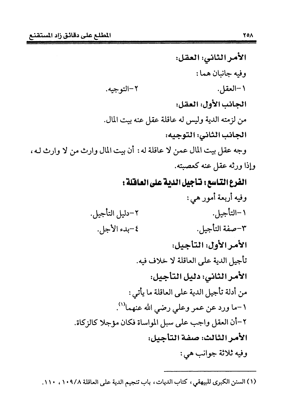 (¬1) السنن الكبرى للبيهقي، كتاب الديات، باب تنجيم الدية على العاقلة 8/ 109، 110.