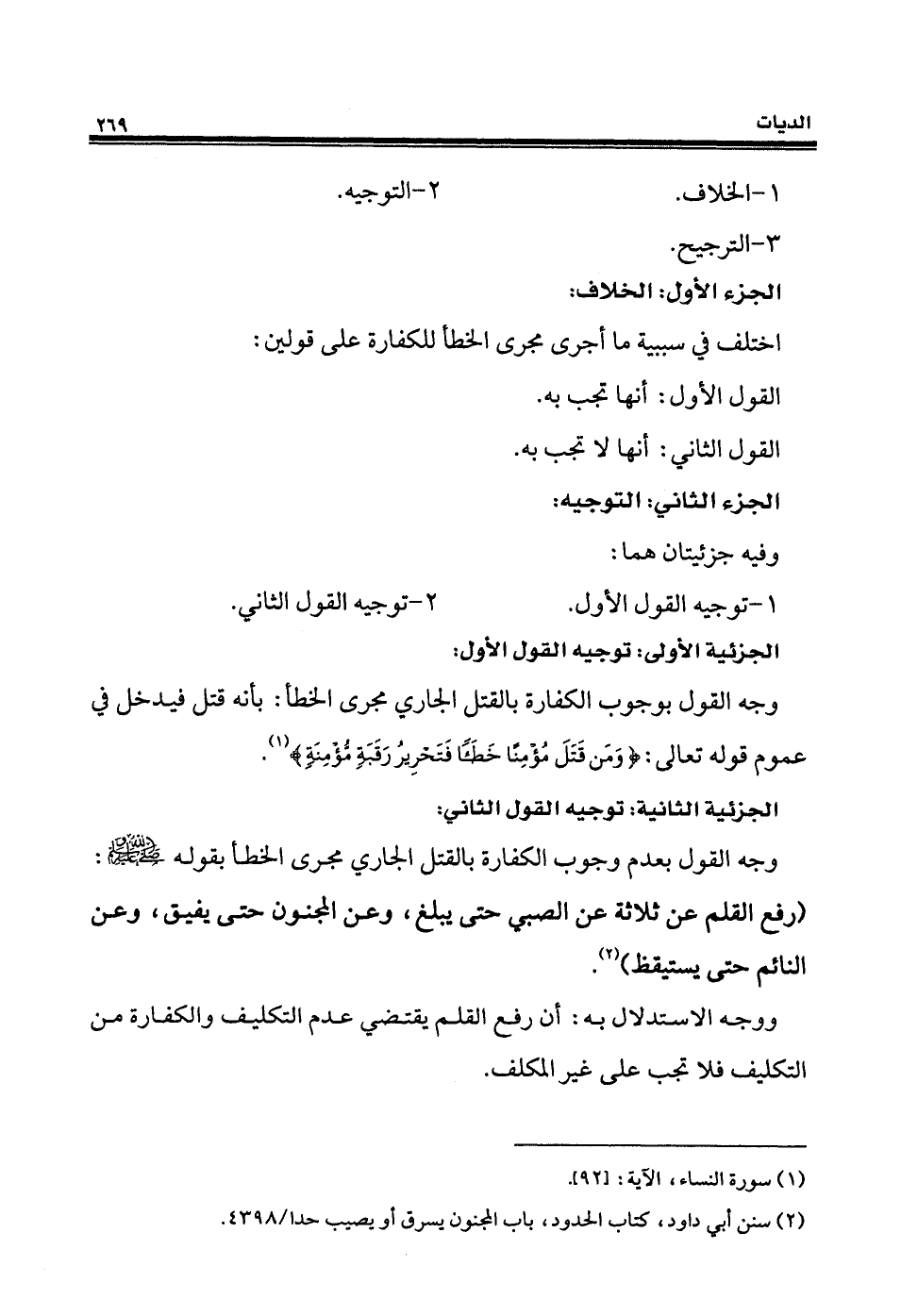 وجه القول بعدم وجوب الكفارة بالقتل الجاري مجرى الخطأ بقوله - صلى الله عليه وسلم -: (رفع القلم عن ثلاثة عن الصبي حتى يبلغ، وعن المجنون حتى يفيق، وعن النائم حتى يستيقظ) (¬2).