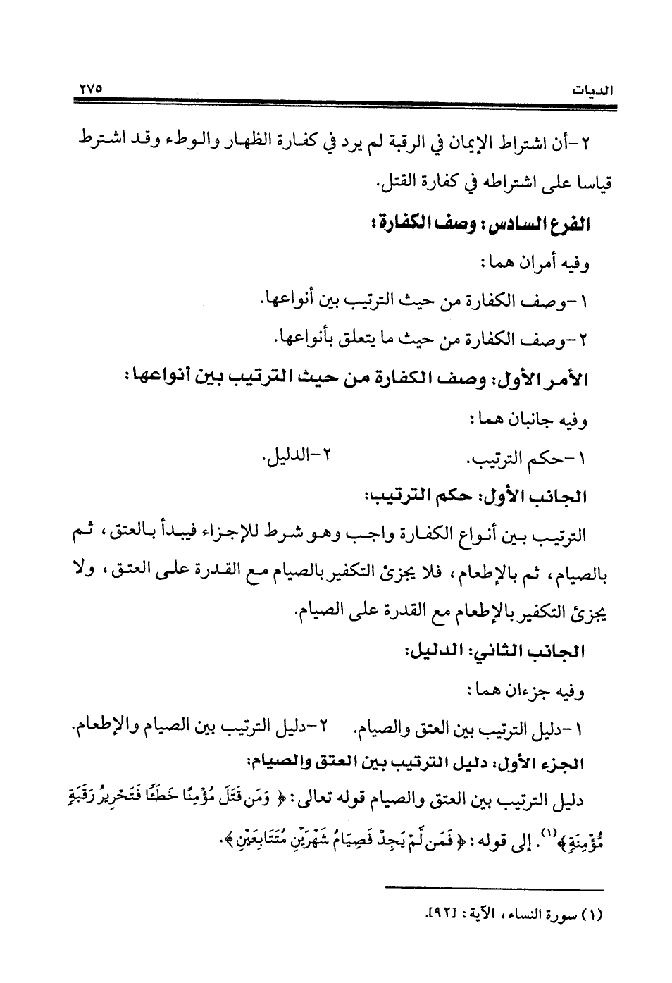1 - وصف الكفارة من حيث الترتيب بين أنواعها.