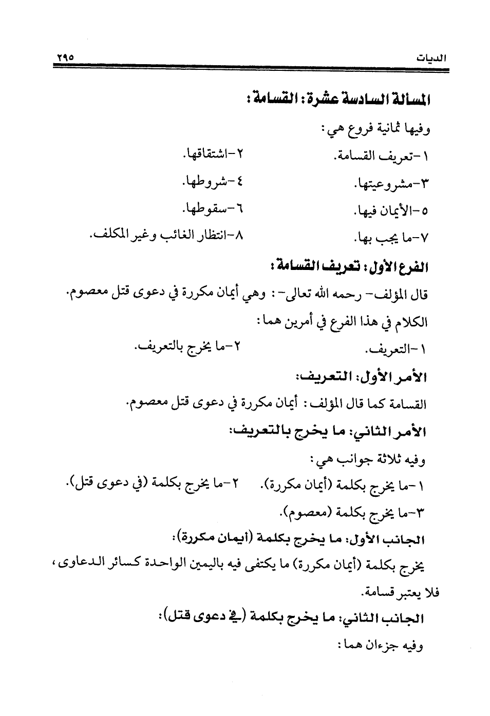 يخرج بكلمة (أيمان مكررة) ما يكتفى فيه باليمين الواحدة كسائر الدعاوى، فلا يعتبر قسامة.