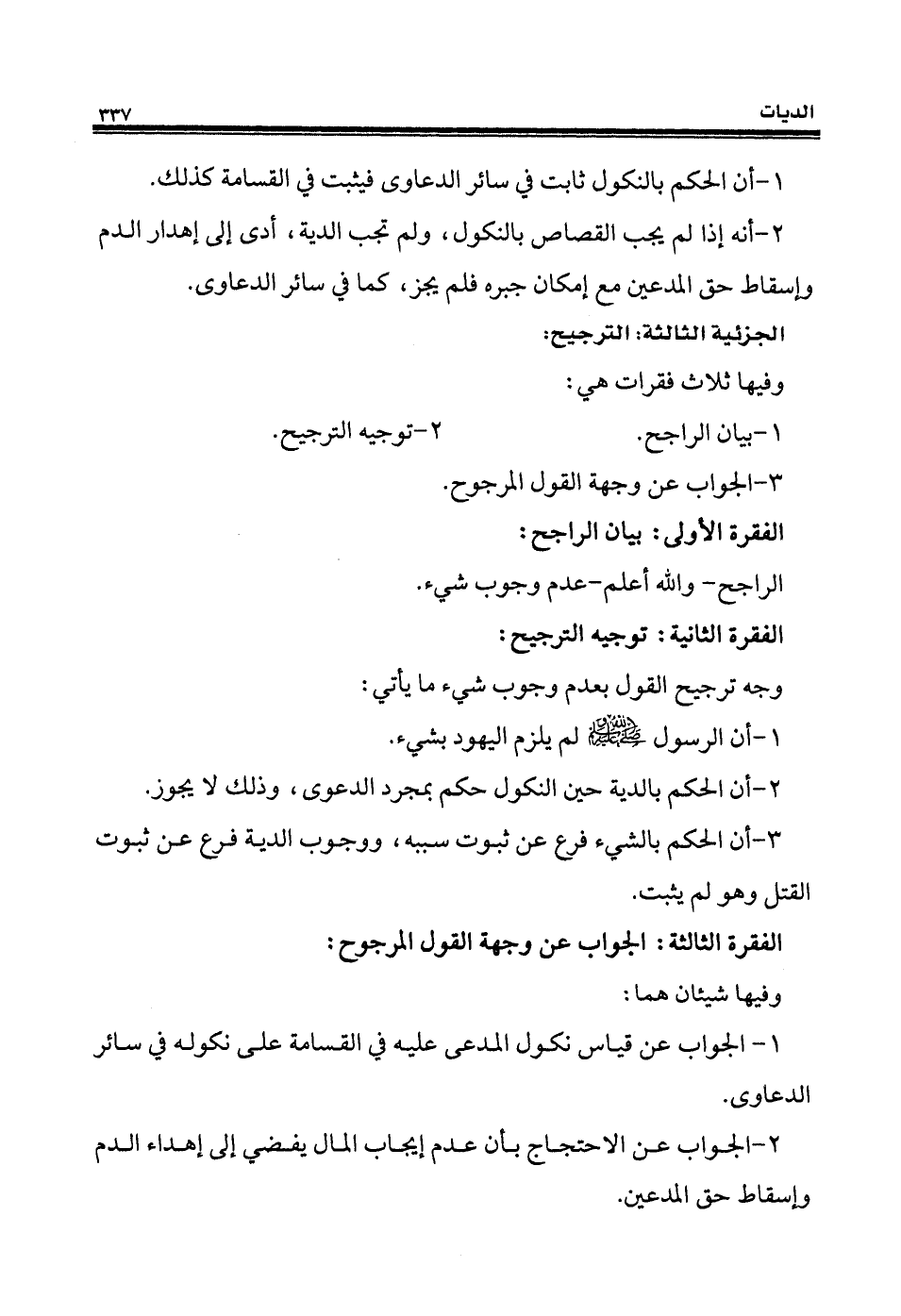 1 - الجواب عن قياس نكول المدعى عليه في القسامة على نكوله في سائر الدعاوى.