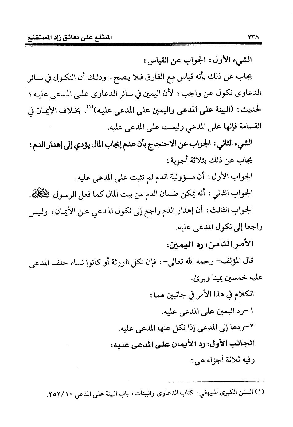 (¬1) السنن الكبرى للبيهقي، كتاب الدعاوى والبينات، باب البينة على المدعي 10/ 252.