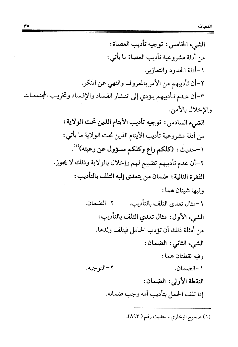 الفقرة الثانية: ضمان من يتعدى إليه التلف بالتأديب: