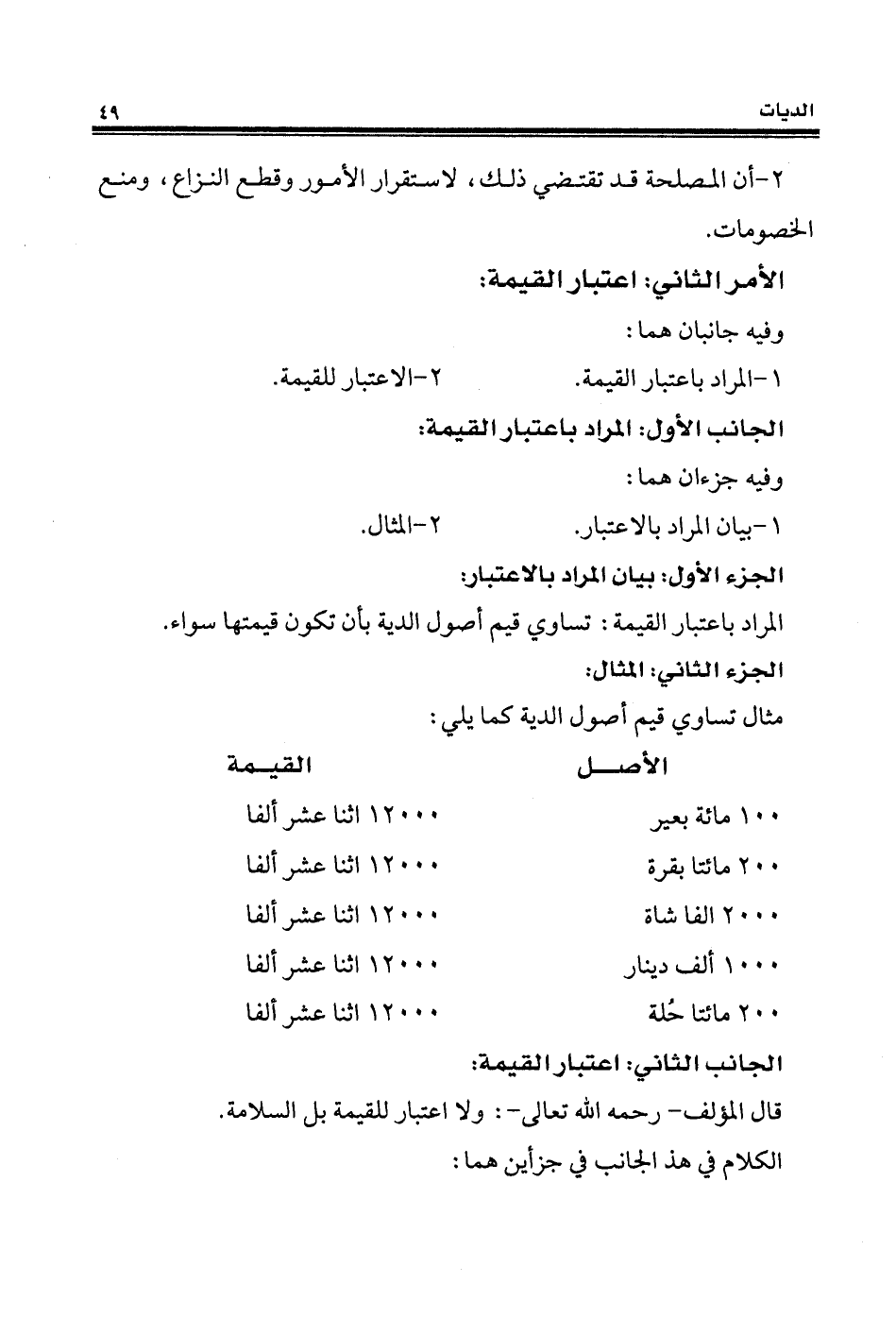 المراد باعتبار القيمة: تساوي قيم أصول الدية بأن تكون قيمتها سواء.