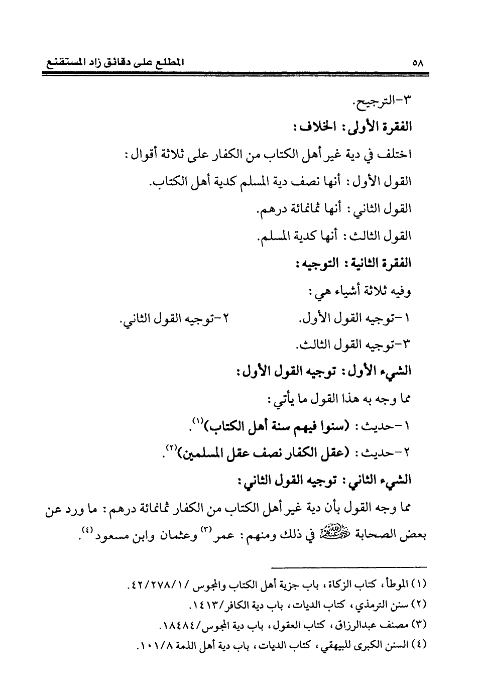 (¬4) السنن الكبرى للبيهقي، كتاب الديات، باب دية أهل الذمة 8/ 101.