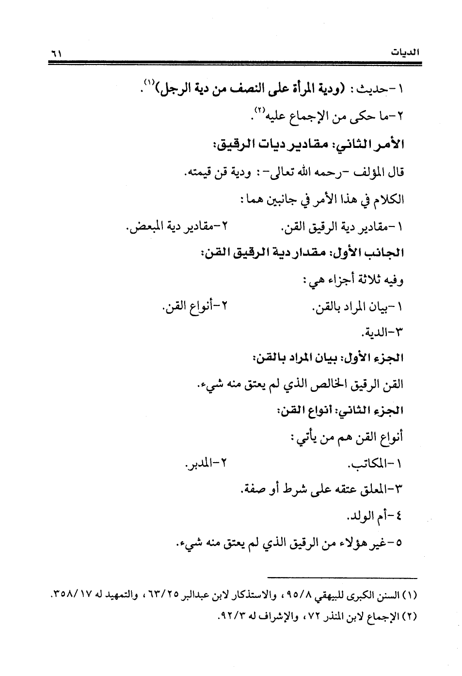 1 - حديث: (ودية المرأة على النصف من دية الرجل) (¬1).