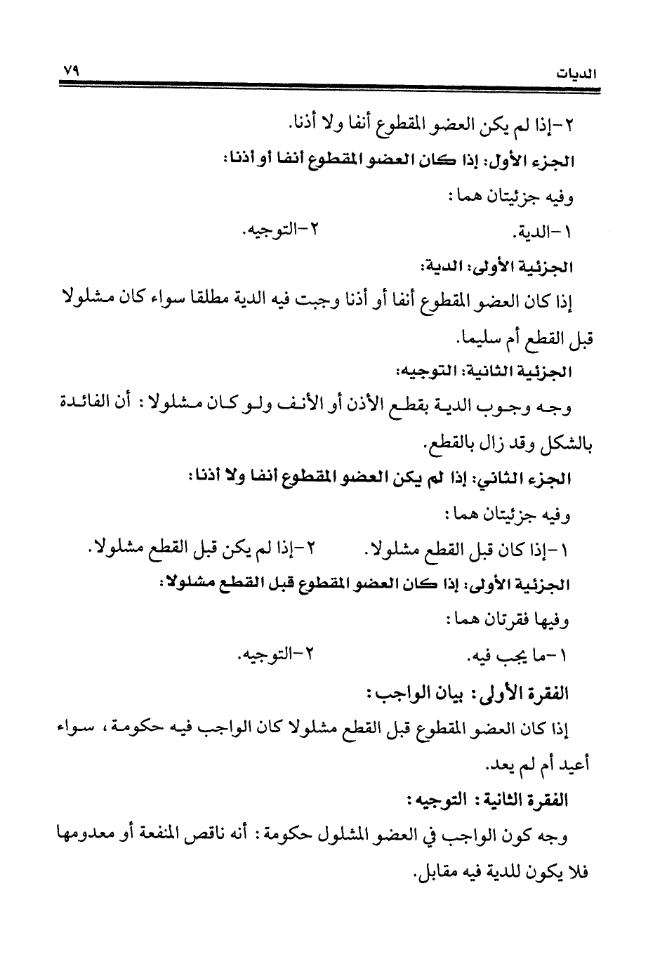 الجزء الثاني: إذا لم يكن العضو المقطوع أنفا ولا أذنا: