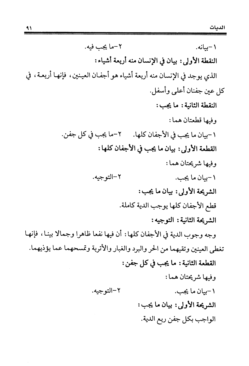 القطعة الأولى: بيان ما يجب في الأجفان كلها: