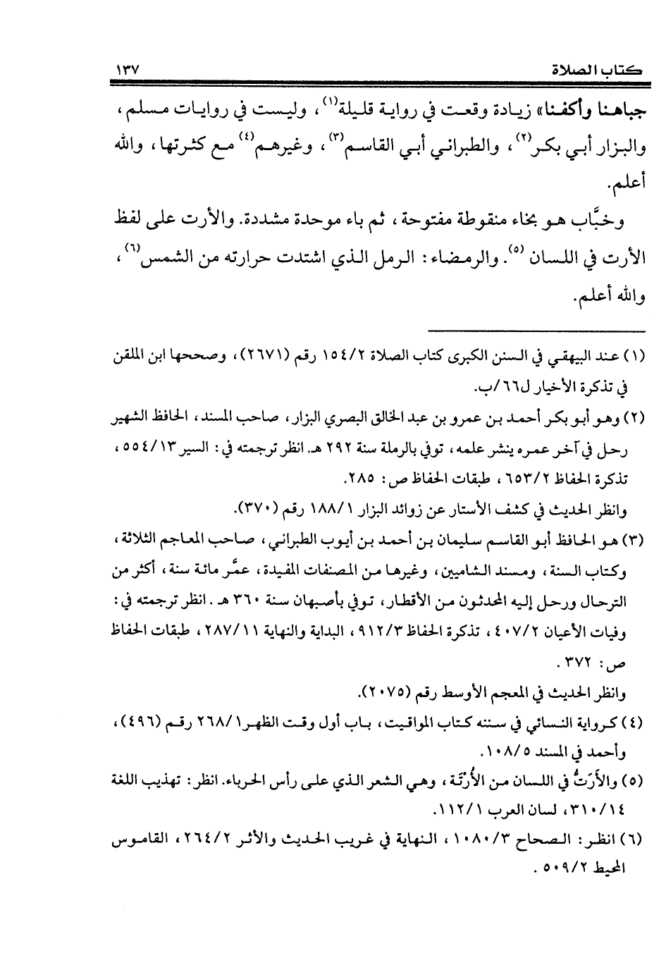 جباهنا وأكفنا" زيادة وقعت في رواية قليلة (¬1)، وليست في روايات مسلم، والبزار أبي بكر (¬2)، والطبراني أبي القاسم (¬3)، وغيرهم (¬4) مع كثرتها، والله أعلم.