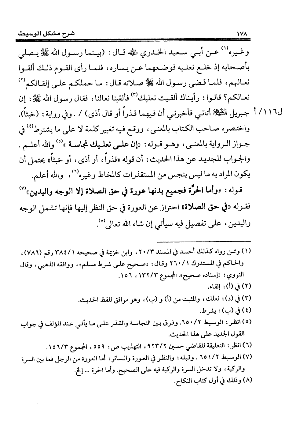 (¬5) انظر: الوسيط 2/ 650. وفرق بين النجاسة والقذر على ما يأتي عند المؤلف في جواب القول الجديد على هذا الحديث.