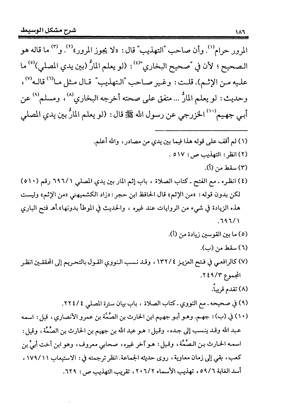 المرور حرام (¬1). وأن صاحب "التهذيب" قال: "لا يجوز المرور" (¬2). و (¬3) ما قاله هو الصحيح؛ لأن في "صحيح البخاري" (¬4): (لو يعلم المارُّ (بين يدي المصلي) (¬5) ما عليه من الإثم). قلت: وغير صاحب "التهذيب" قال مثل ما (¬6) قاله (¬7)، وحديث: لو يعلم المارُّ ... متفق على صحته أخرجه البخاري (¬8)، ومسلم (¬9) عن أبي جهيم (¬10) الخزرجي عن رسول الله - صلى الله عليه وسلم - قال: (لو يعلم المارُّ بين يدي المصلي