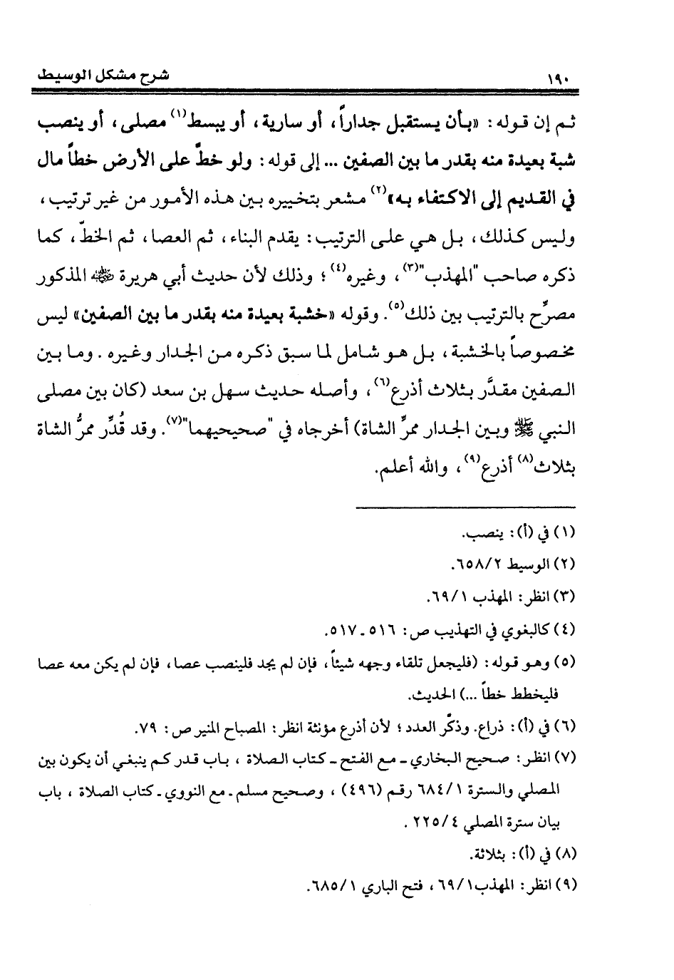 (¬7) انظر: صحيح البخاري - مع الفتح - كتاب الصلاة، باب قدر كم ينبغي أن يكون بين المصلي والسترة 1/ 684 رقم (496)، وصحيح مسلم - مع النووى - كتاب الصلاة، باب بيان سترة المصلي 4/ 225.