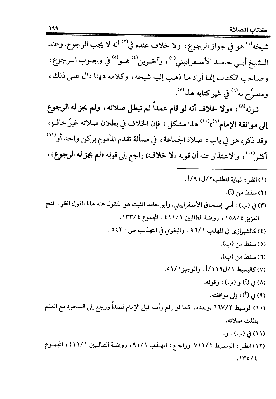 (¬12) انظر: الوسيط 2/ 712. وراجع: المهذب 1/ 91، روضة الطالبين 1/ 411، المجموع 4/ 135.