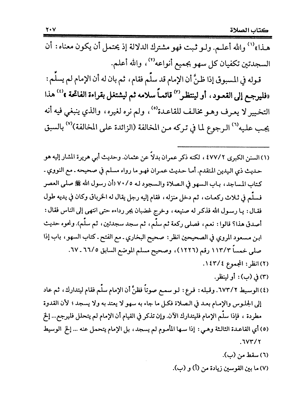 (¬5) أي القاعدة الثالثة وهي: إذا سها المأموم لم يسجد، بل الإمام يتحمل عنه ... إلخ الوسيط 2/ 673.