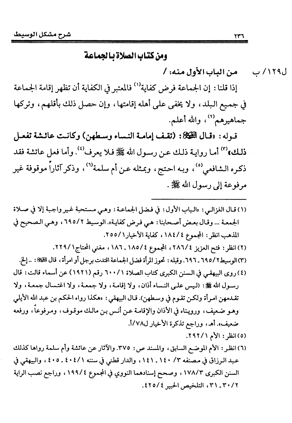 (¬3) الوسيط 2/ 695 - 696. وقبله: تحوز المرأة فضل الجماعة اقتدت برجل أو امرأة، قال - عليه السلام -: .. إلخ.