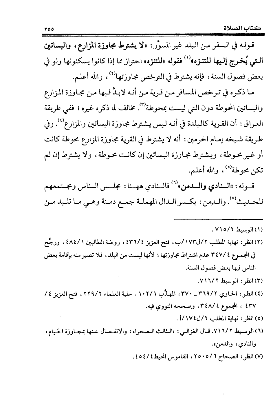 (¬6) الوسيط 2/ 716. قال الغزالي: "الثالث الصحراء: والانفصال عنها بمجاوزة الخيام، والنادي، والدمن".