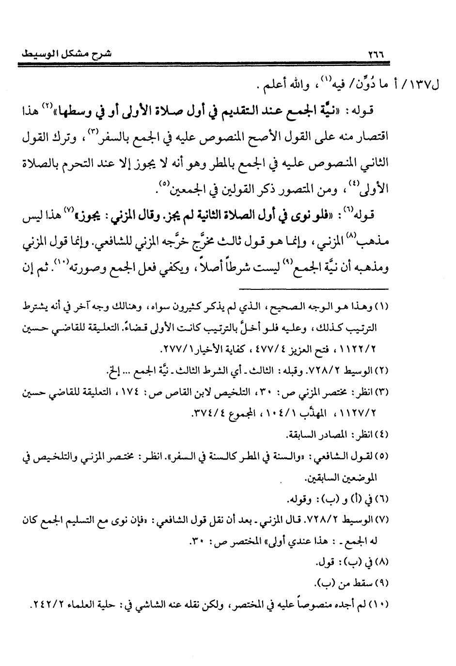 (¬2) الوسيط 2/ 728. وقبله: الثالث - أي الشرط الثالث - نيَّة الجمع ... إلخ.
