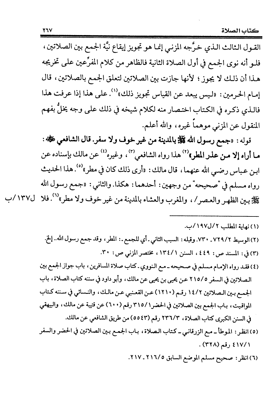 (¬5) انظر: الموطأ - مع الزرقاني - كتاب الصلاة، باب الجمع بين الصلاتين في الحضر والسفر 1/ 417 رقم (328).