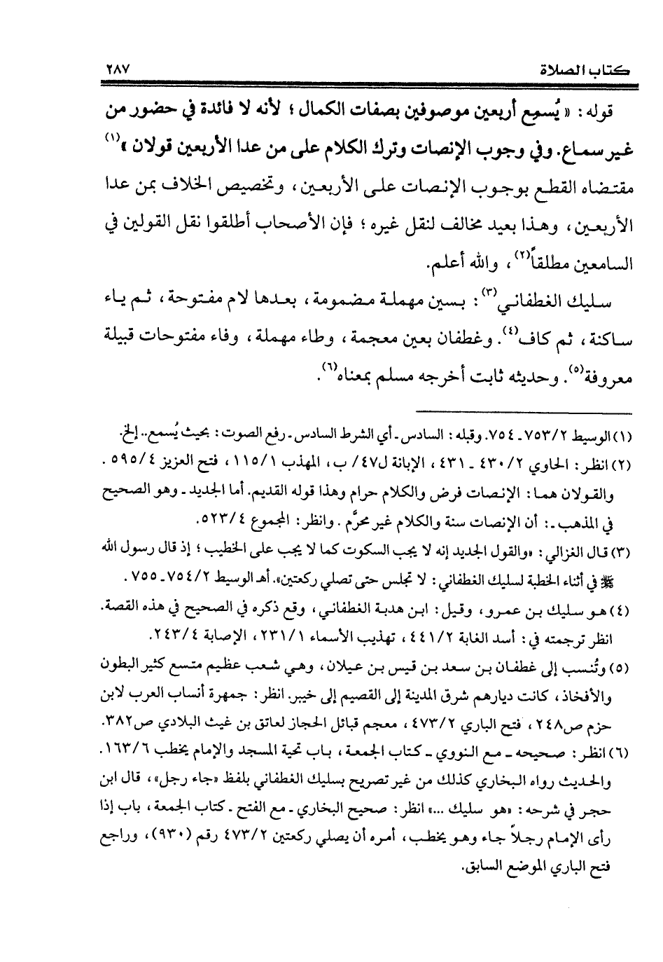 (¬1) الوسيط 2/ 753 - 754. وقبله: السادس - أي الشرط السادس - رفع الصوت: بحيث يُسمع .. إلخ.