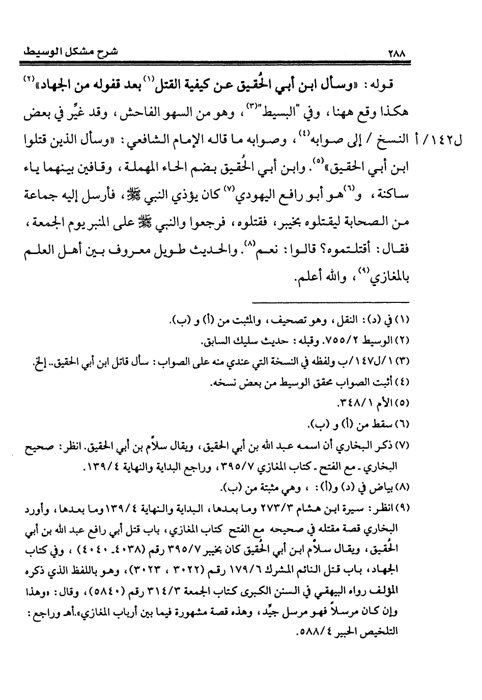 (¬3) 1/ ل147/ ب ولفظه في النسخة التي عندي منه على الصواب: سأل قاتل ابن أبي الحقيق .. إلخ.