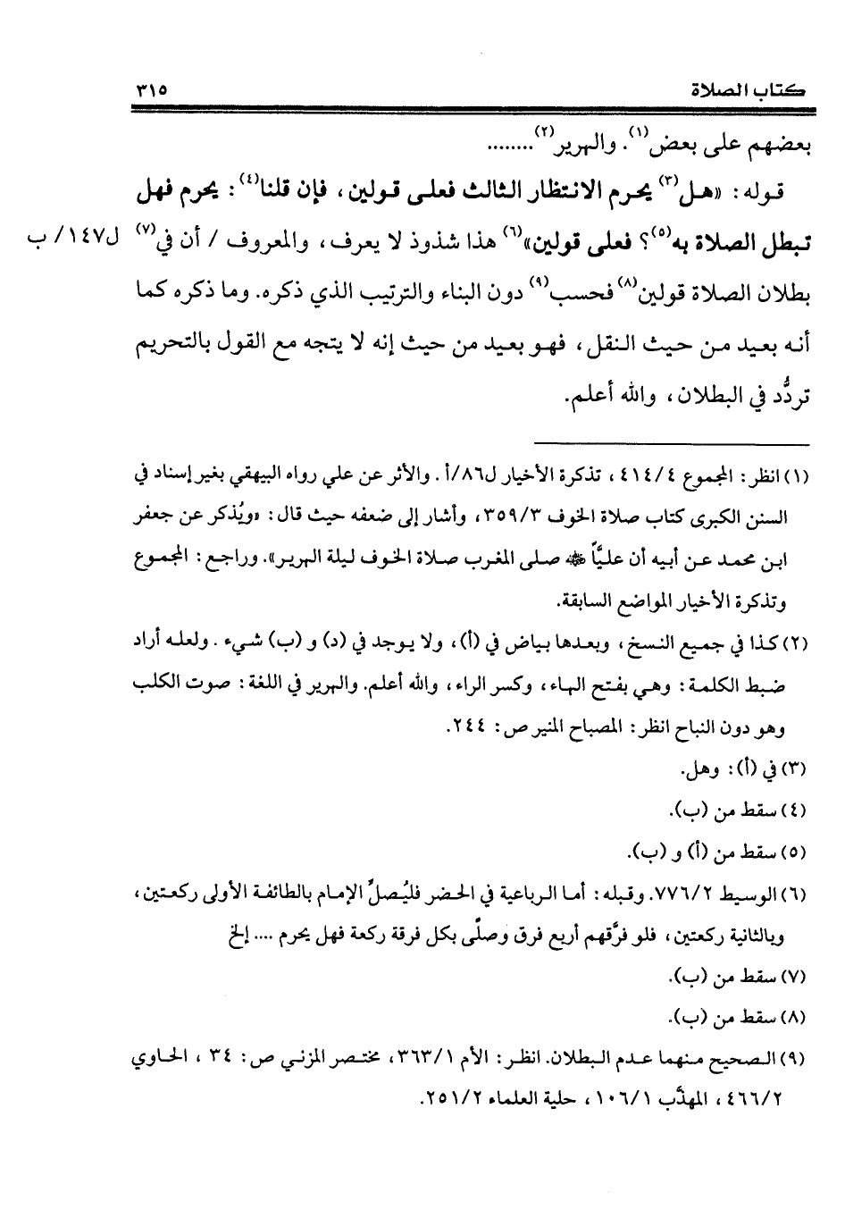 (¬9) الصحيح منهما عدم البطلان. انظر: الأم 1/ 363، مختصر المزني ص: 34، الحاوي 2/ 466، المهذَّب 1/ 106، حلية العلماء 2/ 251.