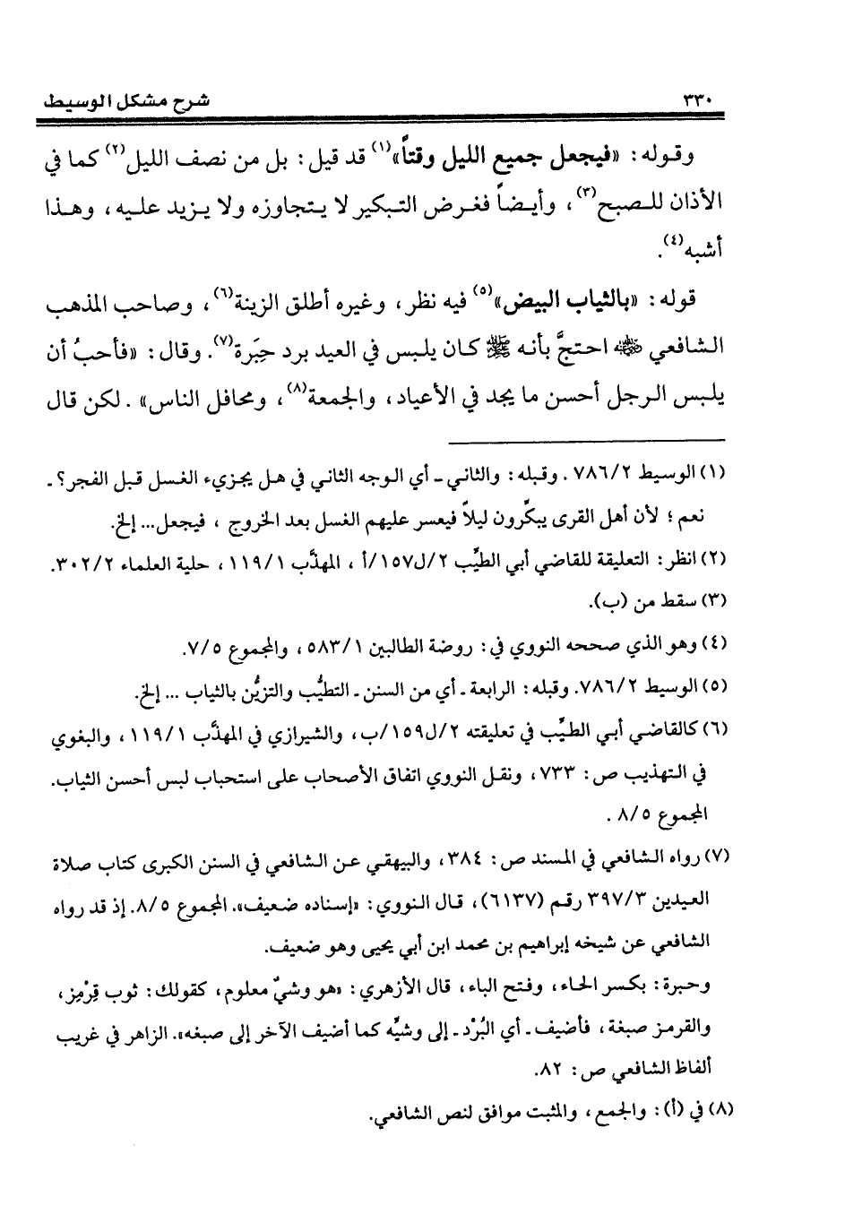 (¬5) الوسيط 2/ 786. وقبله: الرابعة - أي من السنن - التطيُّب والتزيُّن بالثياب ... إلخ.