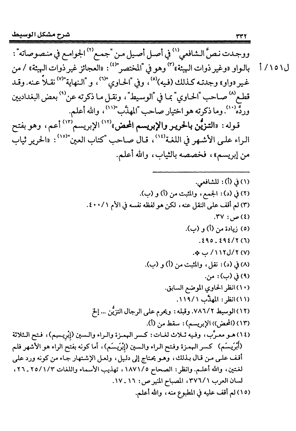 (¬12) الوسيط 2/ 786. وقبله: ويحرم على الرجال التزيُّن ... إلخ