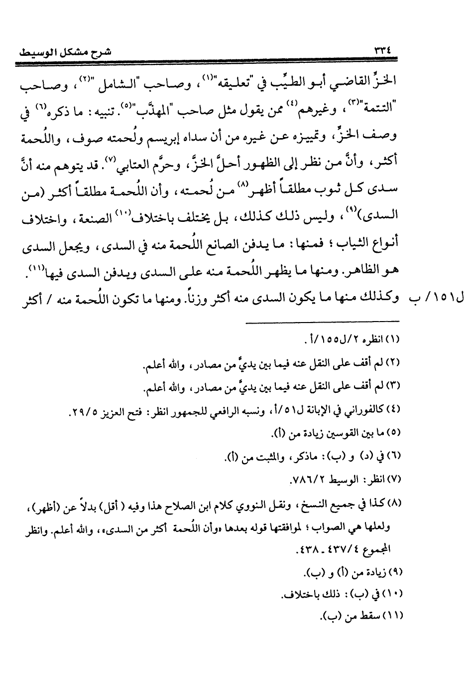 (¬8) كذا في جميع النسخ، ونقل النووي كلام ابن الصلاح هذا وفيه (أقل) بدلاً عن (أظهر)، ولعلها هى الصواب؛ لموافقتها قوله بعدها "وأن اللُحمة أكثر من السدى"، والله أعلم. وانظر المجموع 4/ 437 - 438.
