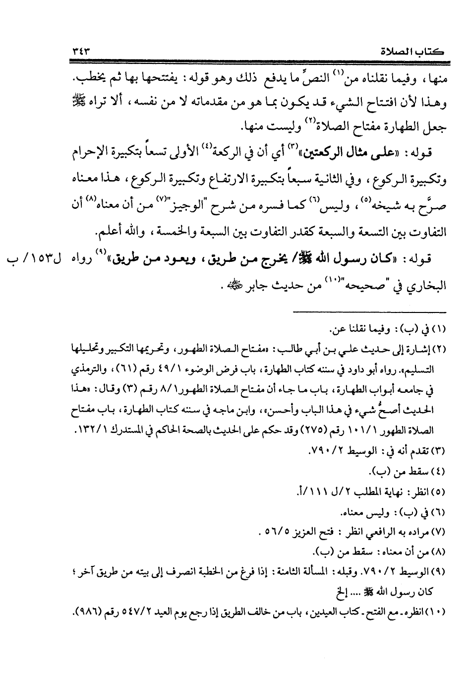 (¬9) الوسيط 2/ 790. وقبله: المسألة الثامنة: إذا فرغ من الخطبة انصرف إلى بيته من طريق آخر؛ كان رسول الله - صلى الله عليه وسلم - .... إلخ
