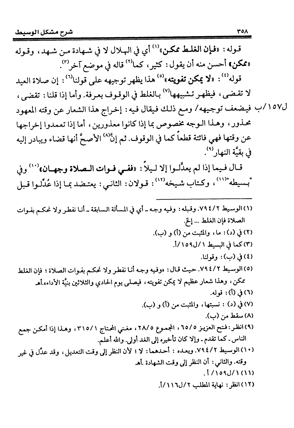 (¬1) الوسيط 2/ 794. وقبله: وفيه وجه - أي في المسألة السابقة - أنا نفطر ولا نحكم بفوات الصلاة فإن الغلط ... إلخ.