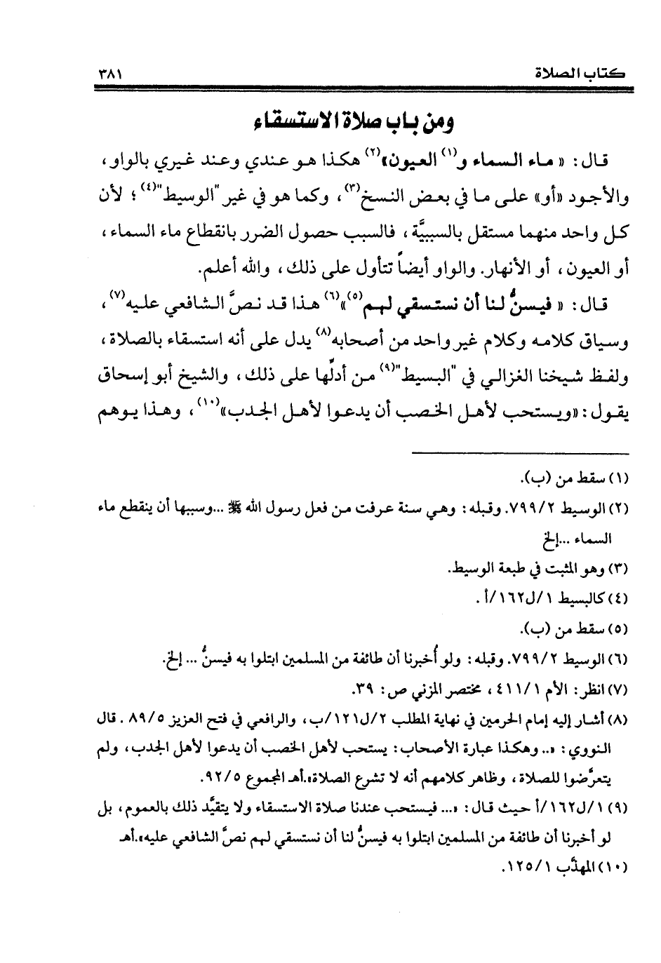 (¬2) الوسيط 2/ 799. وقبله: وهي سنة عرفت من فعل رسول الله - صلى الله عليه وسلم - ... وسببها أن ينقطع ماء السماء ... إلخ