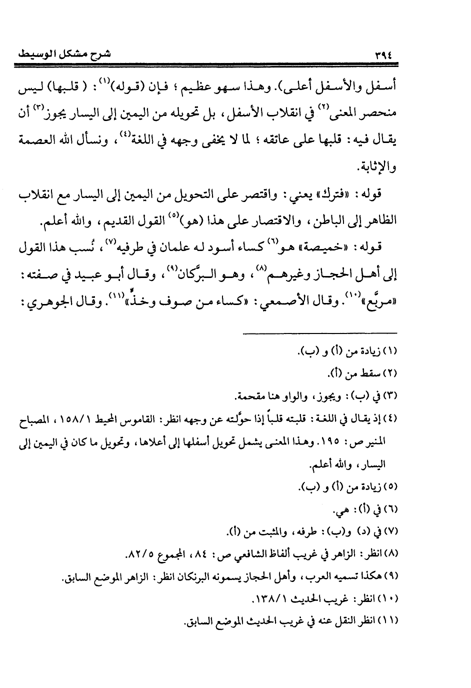 (¬4) إذ يقال في اللغة: قلبته قلباً إذا حوَّلته عن وجهه انظر: القاموس المحيط 1/ 158، المصباح المنير ص: 195. وهذا المعنى يشمل تحويل أسفلها إلى أعلاها، وتحويل ما كان في اليمين إلى اليسار، والله أعلم.