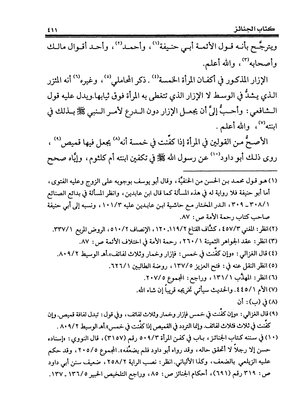 (¬9) قال الغزالي: "وإن كفَّنت في خمس فإزار وخمار وثلاث لفائف، وفي قول: تبدل لفافة قميص. وإن كفَّنت في ثلاث فثلاث لفائف. وإنما التردد في القميص إذا كفَّنت في خمس". أهـ الوسيط 2/ 809.