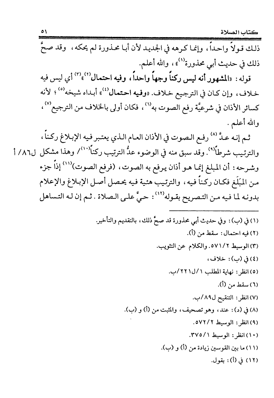 (¬3) الوسيط 2/ 571. والكلام عن التثويب.