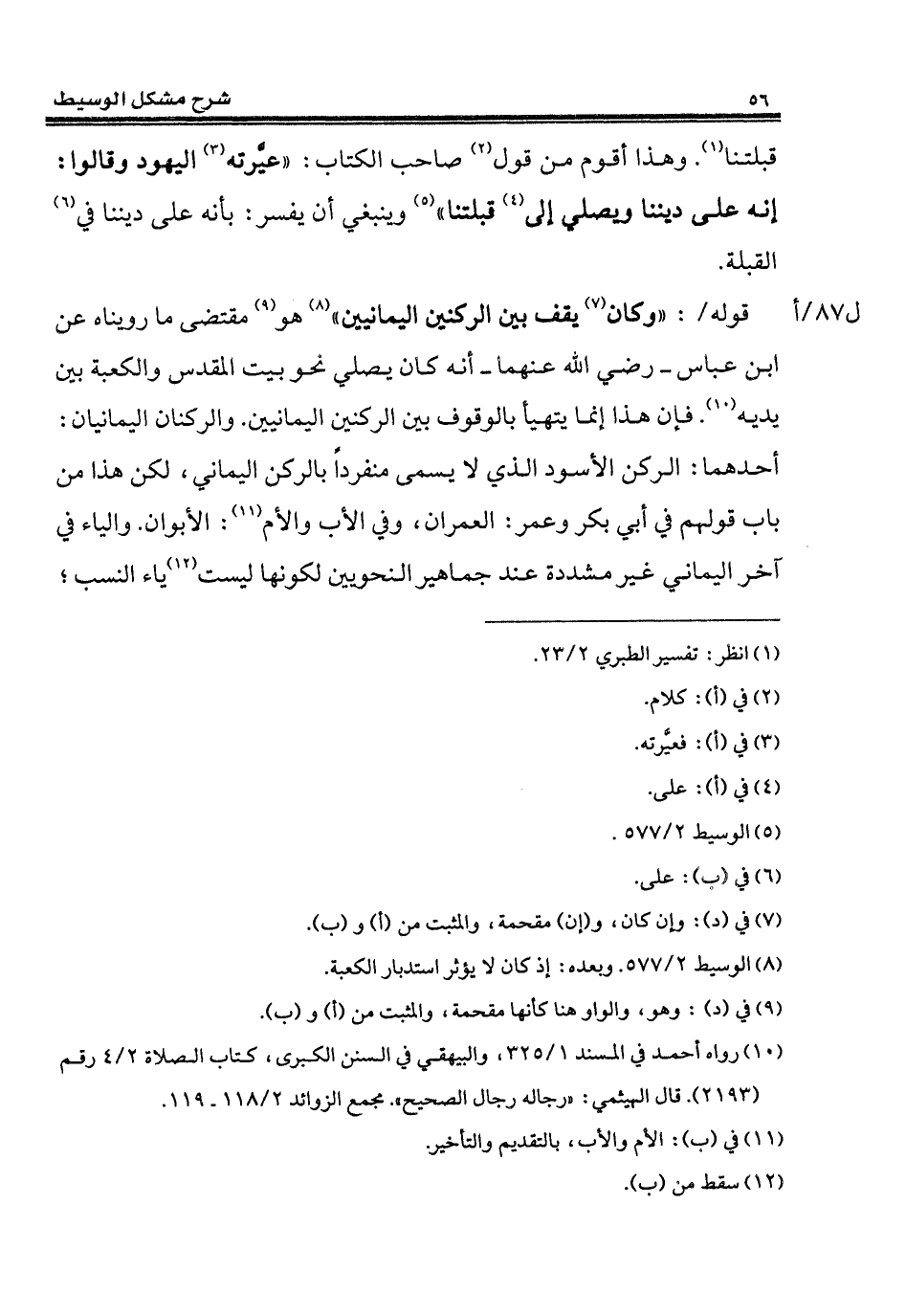 (¬8) الوسيط 2/ 577. وبعده: إذ كان لا يؤثر استدبار الكعبة.