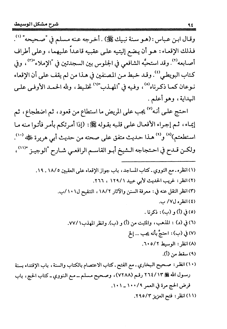 (¬1) انظره - مع النووي - كتاب المساجد، باب جواز الإقعاء على العقبين 5/ 18 - 19.