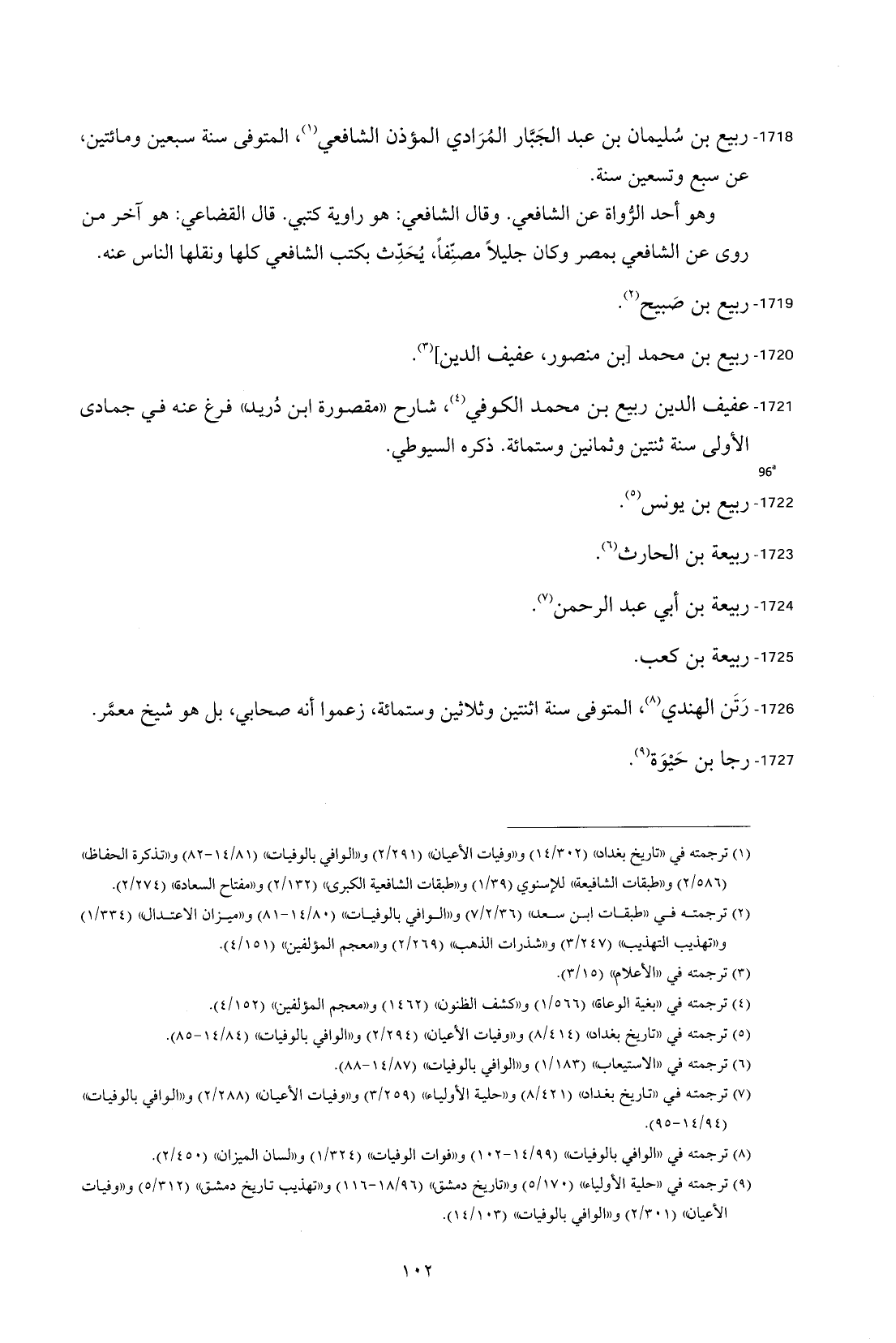 1718 - ربيع بن سُليمان بن عبد الجَبّار المُرادي المؤذن الشافعي (¬1)، المتوفى سنة سبعين ومائتين، عن سبع وتسعين سنة.