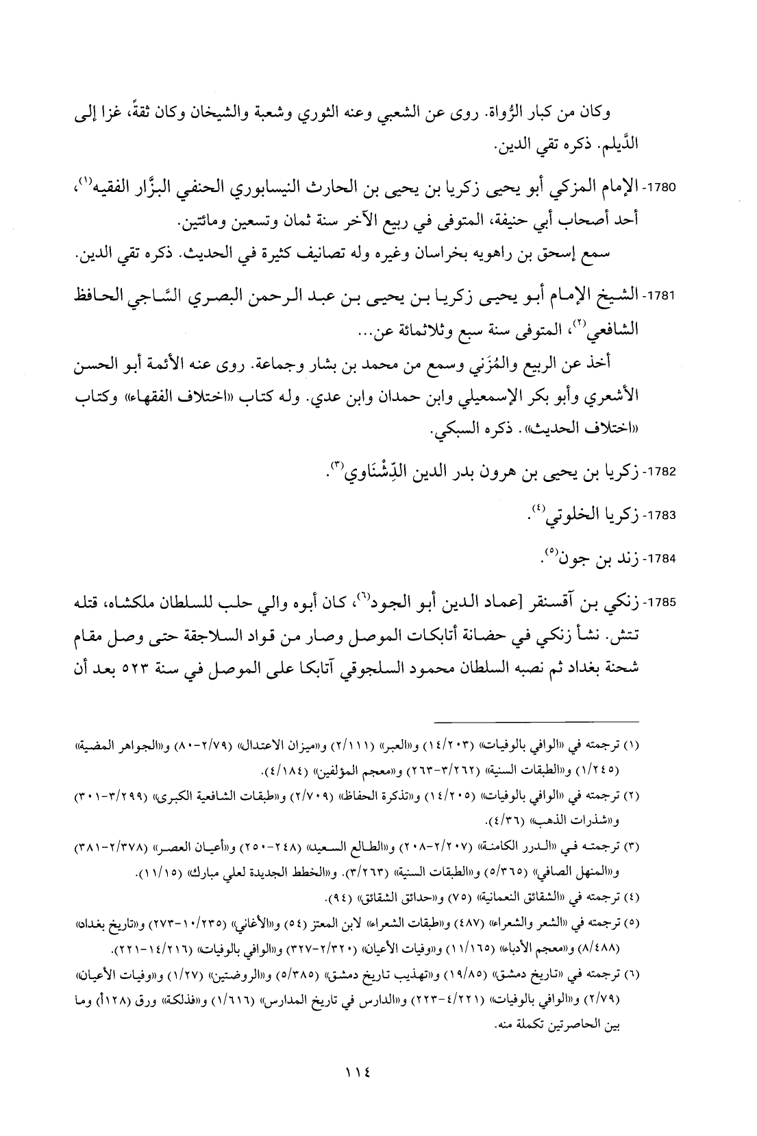 1781 - الشيخ الإمام أبو يحيى زكريا بن يحيى بن عبد الرحمن البصري السّاجي الحافظ الشافعي (¬2)، المتوفى سنة سبع وثلاثمائة عن ...