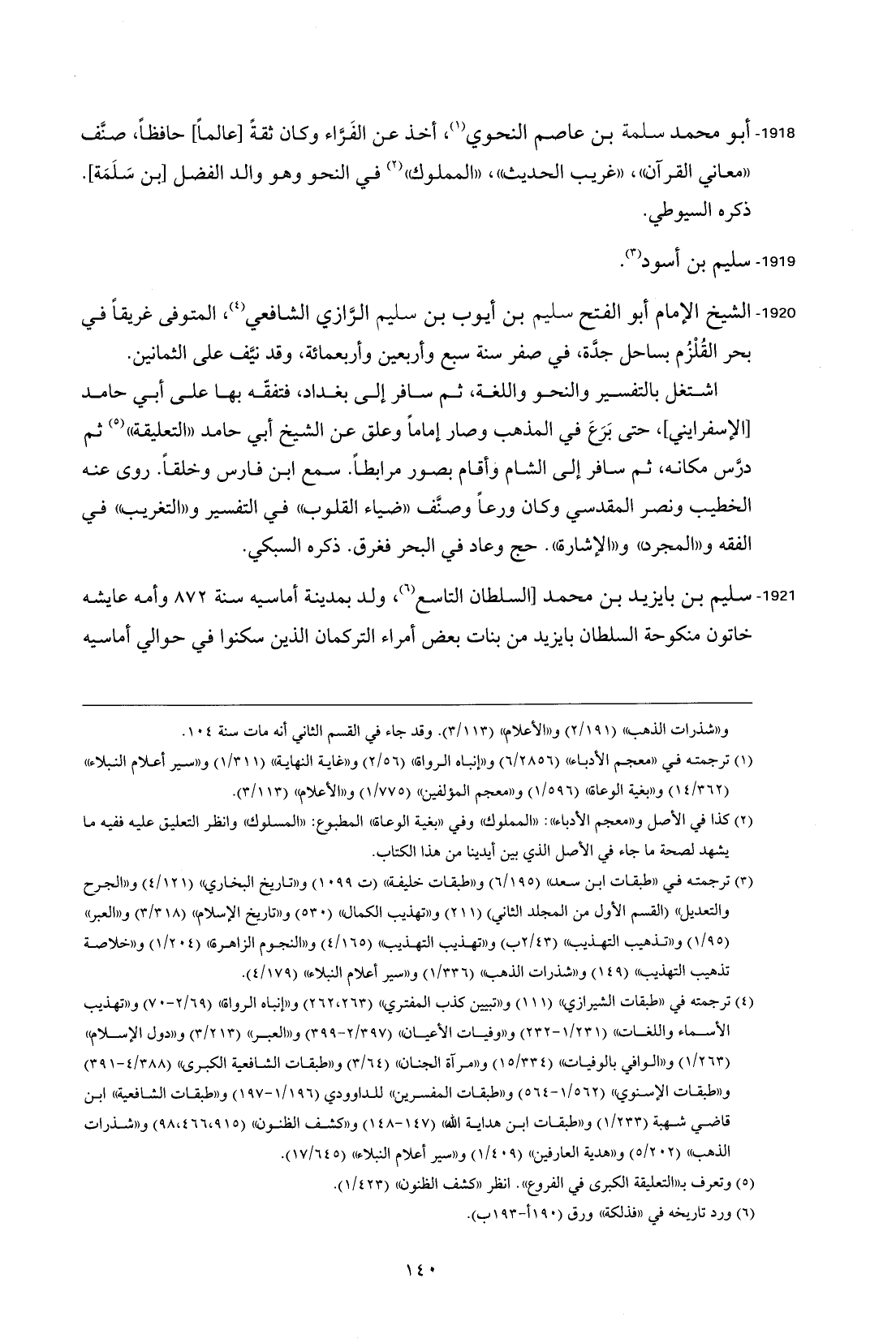 1920 - الشيخ الإمام أبو الفتح سليم بن أيوب بن سليم الرَّازي الشافعي (¬4)، المتوفى غريقًا في بحر القُلْزُم بساحل جدَّة، في صفر سنة سبع وأربعين وأربعمائة، وقد نيَّف على الثمانين.