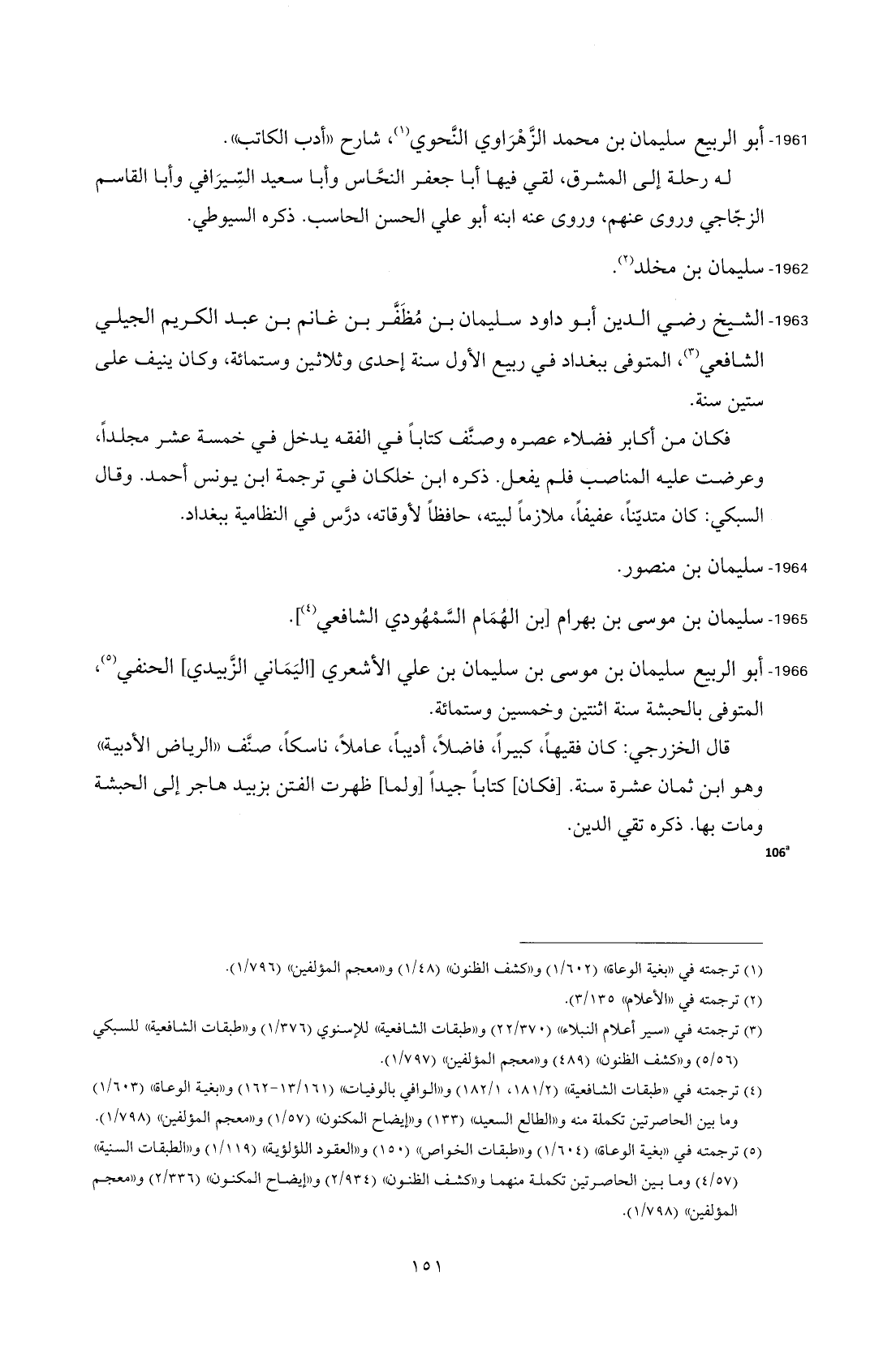 1966 - أبو الربيع سليمان بن موسى بن سليمان بن علي الأشعري [اليَمَاني الزَّبيدي] الحنفي (¬5)، المتوفى بالحبشة سنة اثنتين وخمسين وستمائة.