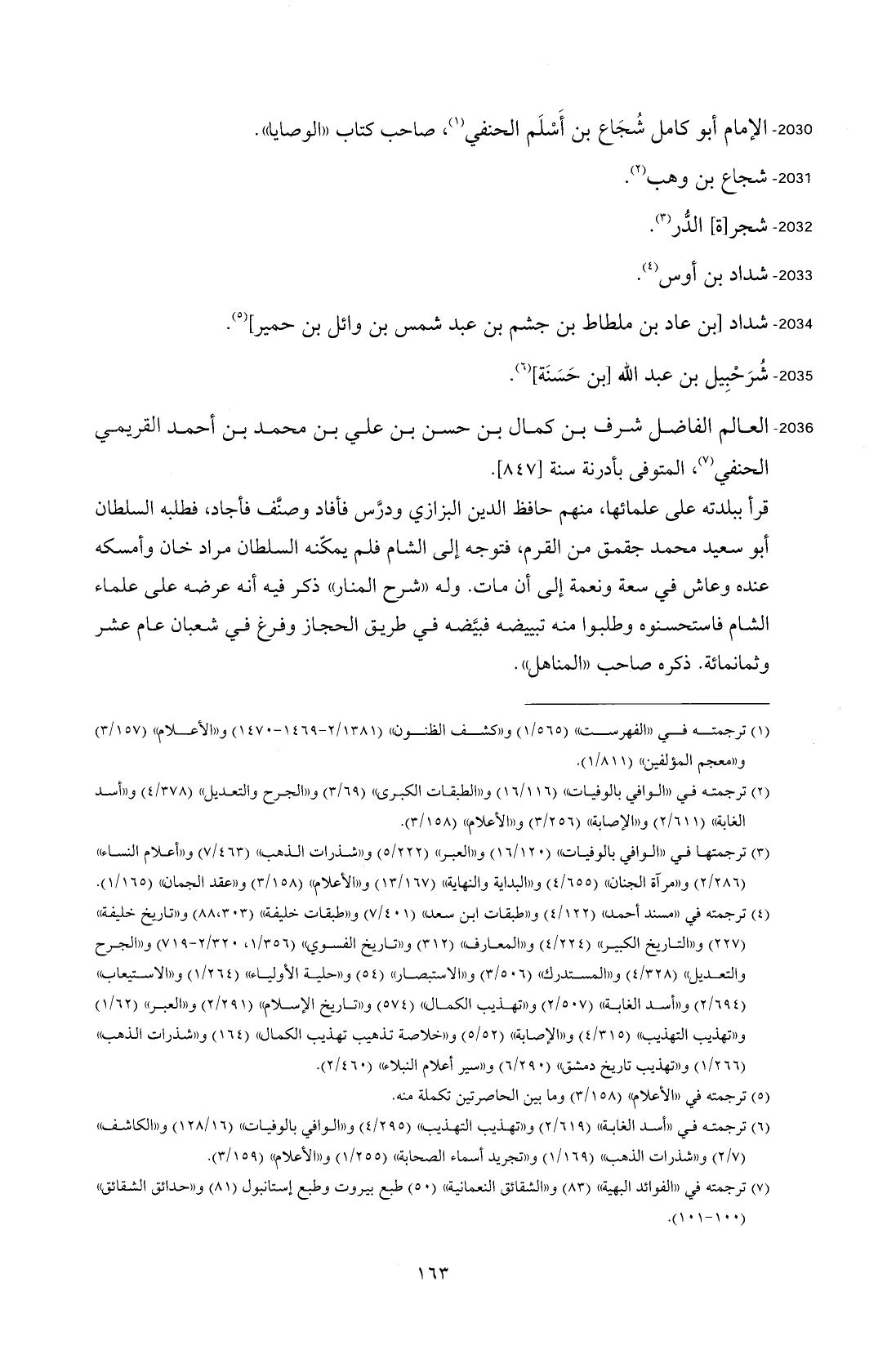 2036 - العالم الفاضل شرف بن كمال بن حسن بن علي بن محمد بن أحمد القريمي الحنفي (¬7)، المتوفى بأدرنة سنة [847].
