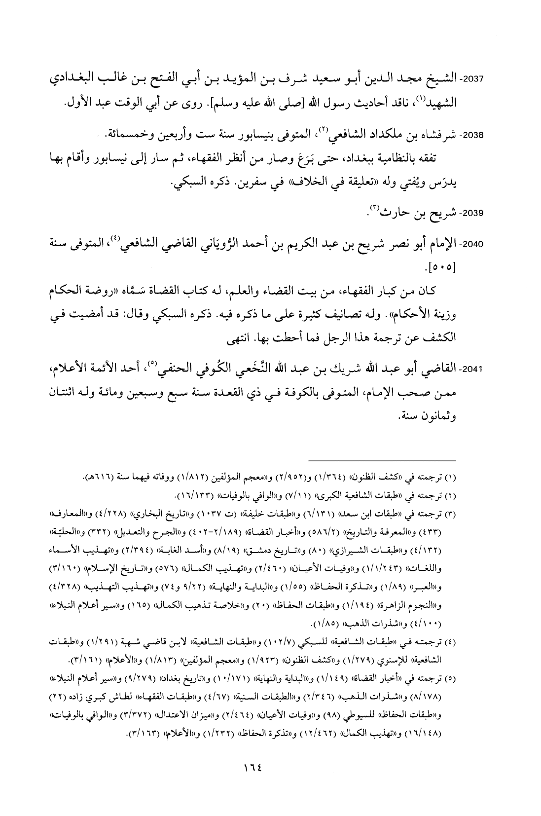 2040 - الإمام أبو نصر شريح بن عبد الكريم بن أحمد الرُّويَاني القاضي الشافعي (¬4)، المتوفى سنة [505].